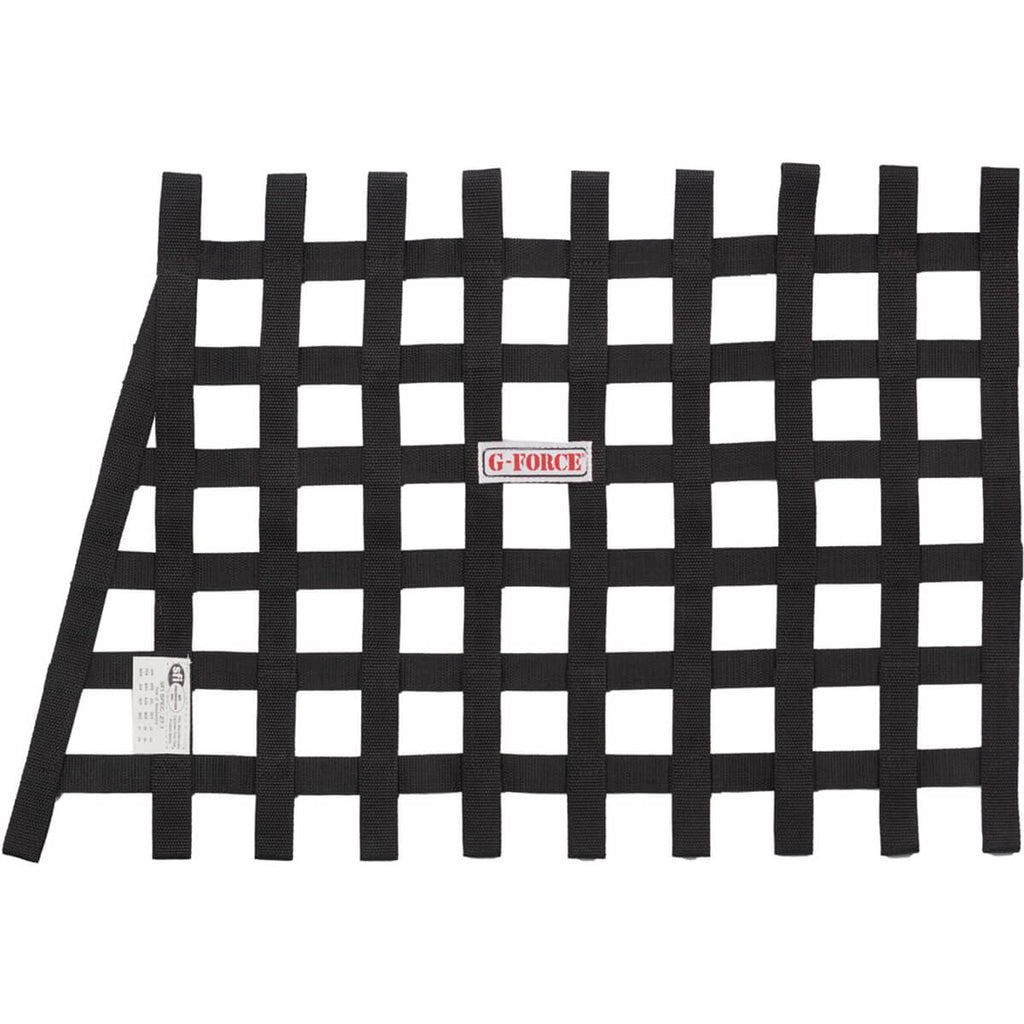 G-FORCE Racing Gear Angle Ribbon Window Nets are all jig built to ensure consistent dimensions. 1″ wide webbing and double overlap construction provide a strong, durable net. Angle version for additional coverage of the A-pillar area in sedan type cars. Black.